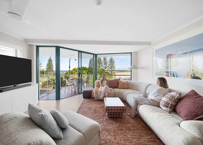Offering an outdoor swimming pool, Caprina At Happy Valley - Beachfront Escape Caloundra apartment is located merely a 5-minute walk from Clarke Place Park. Set in proximity to Downtown Caloundra, the spacious apartment features a patio with a seaside view.